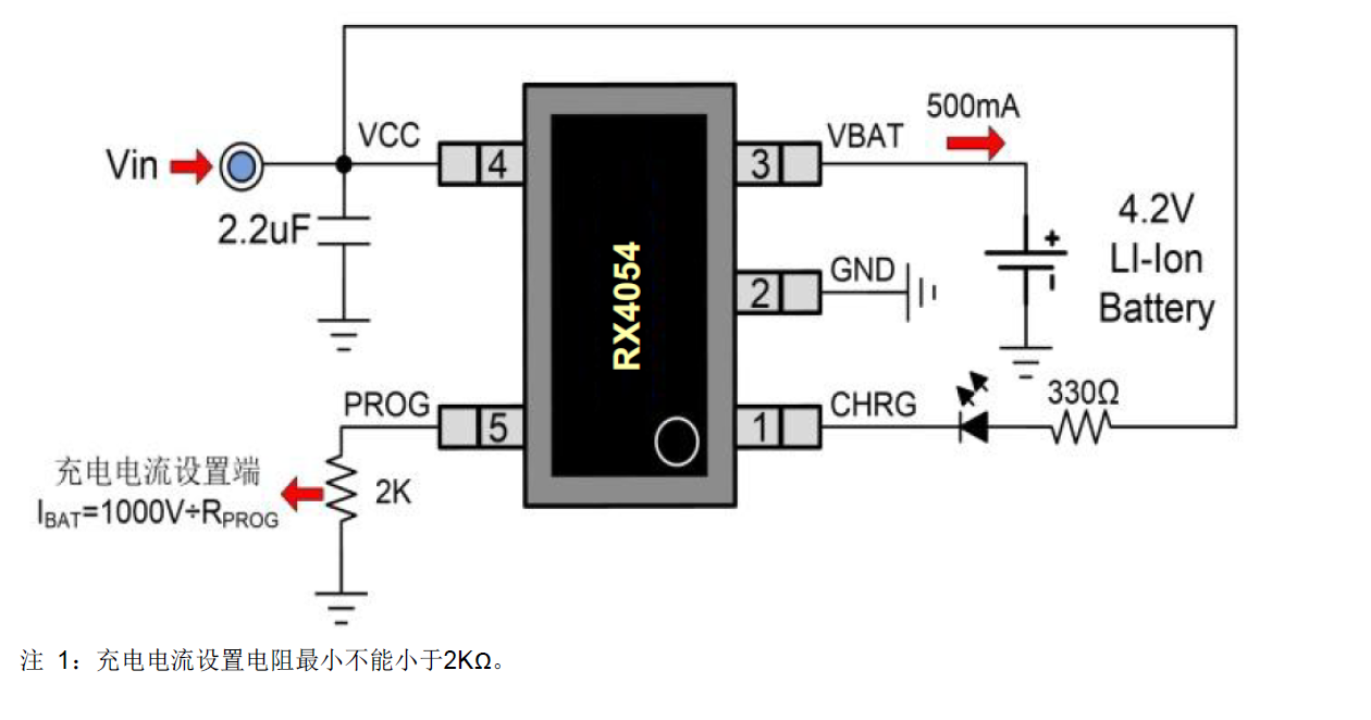 RX4054充電截止電壓為4.2V,充電電流可通過